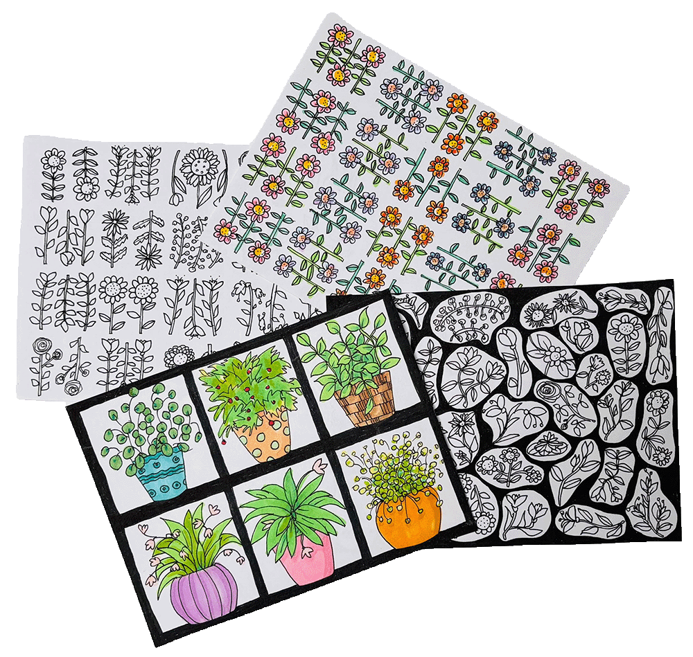Deze vier unieke kleurkaarten heb ik speciaal voor jou gemaakt. Zo kun je meteen met jouw creativiteit aan de slag.