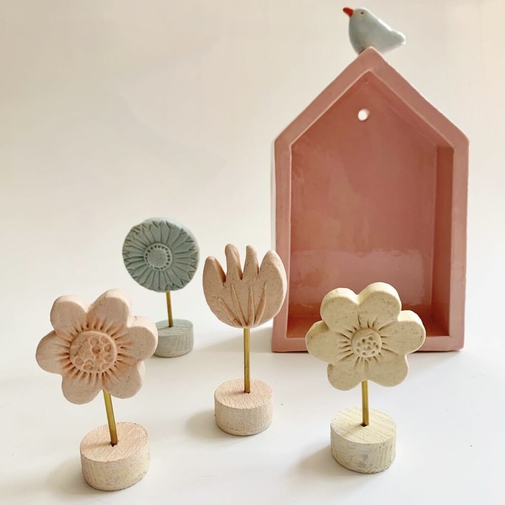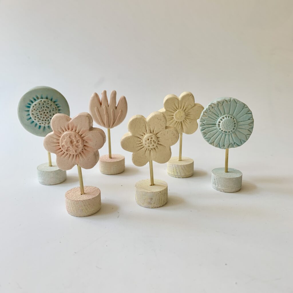 Kleine bloemen op een blokje lichtblauw
