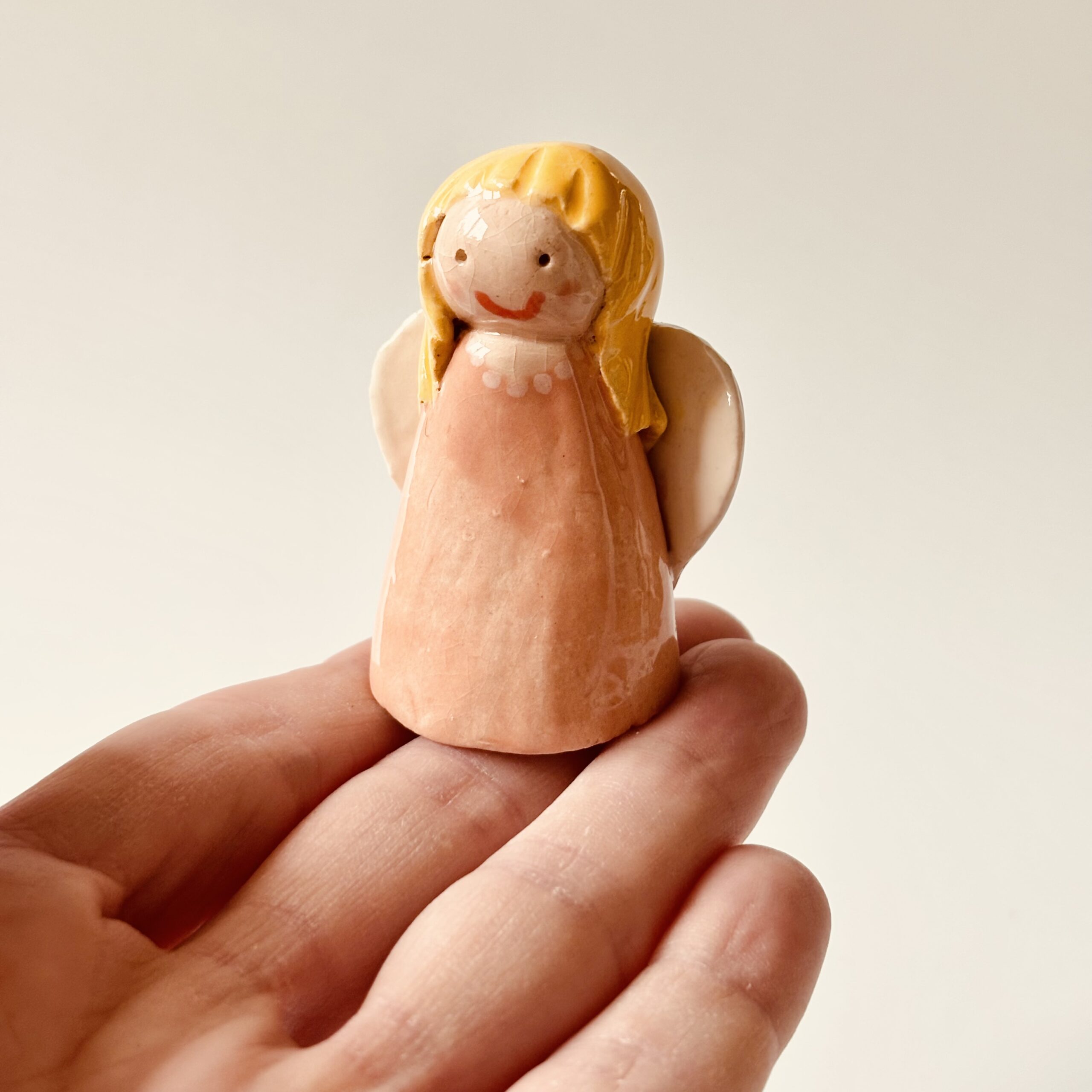 Engeltje lichtoranje van keramiek. Ik heb het engeltje met de hand gevormd. Daarna heb ik het geglazuurd in lichtoranje. Een unieke decoratie voor de kerst. Maar eigenlijk het hele jaar leuk om te geven of te krijgen.