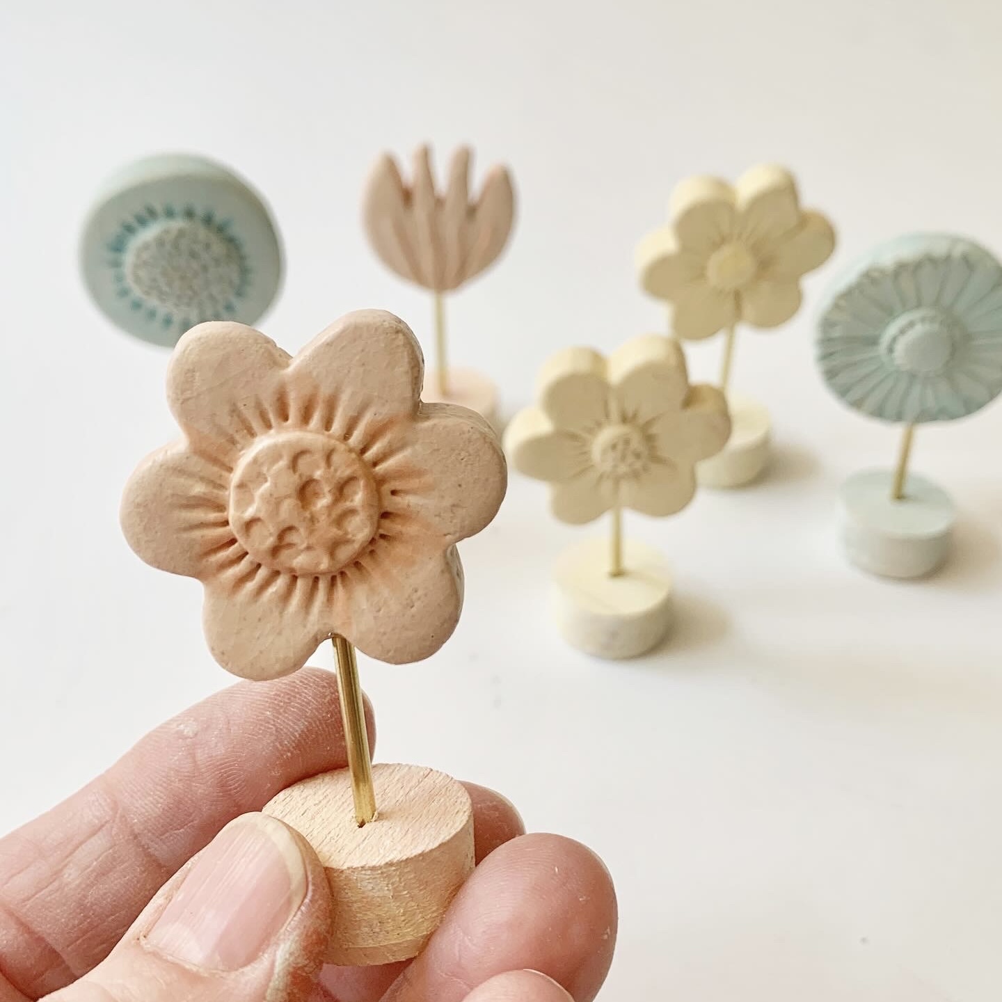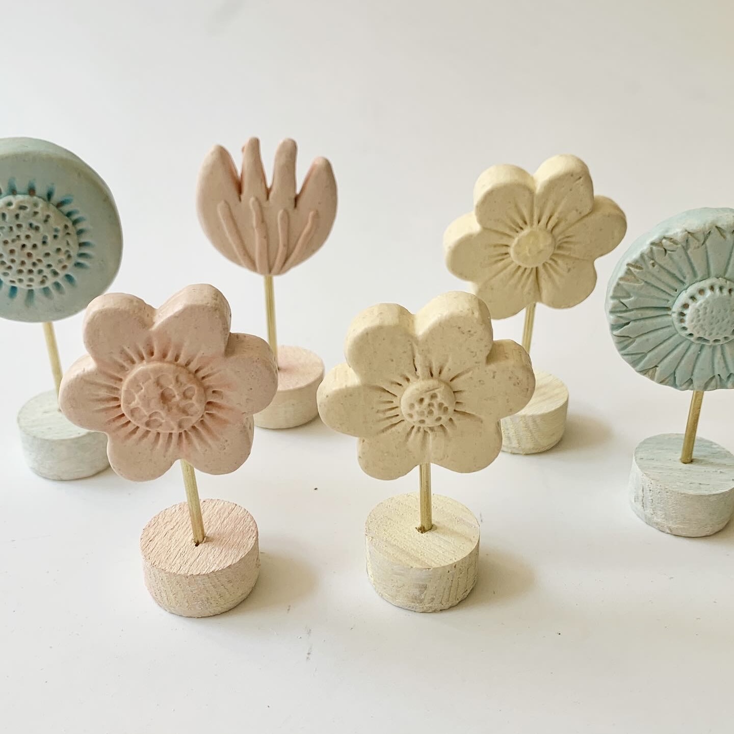 Deze kleine bloemen op een blokje lichtblauw heb ik met de hand gevormd en geglazuurd in een matte pasteltint. Ze staan stevig op het massief houten blokje in bijpassende kleur. Ze zijn superleuk in de huisjes, die vind je hier of je kunt ze als leuke attentie cadeau geven bij een speciale gelegenheid.