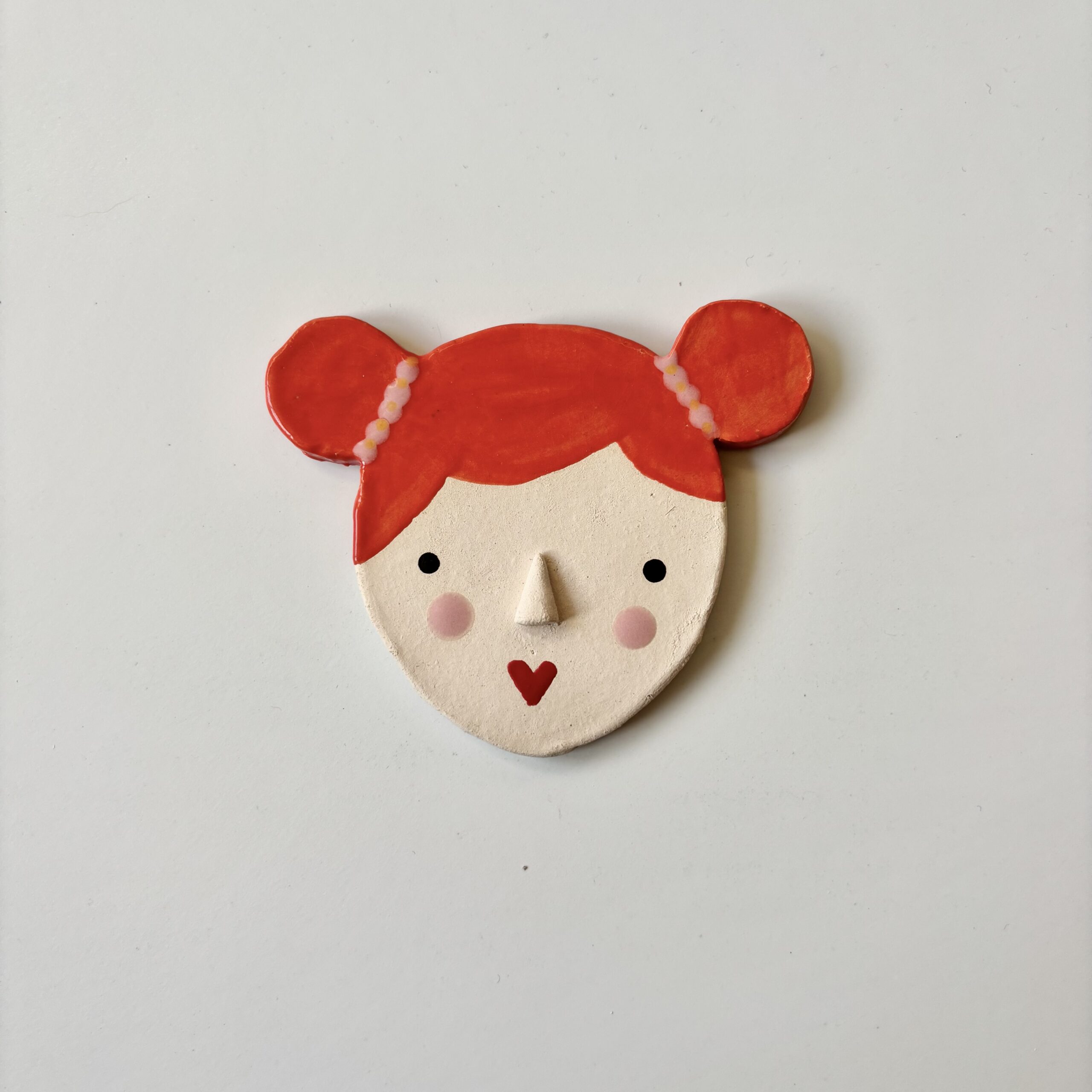 Dit Portretje groot met rood haar heb ik gemaakt van een restje klei en is gewoon fun aan de muur, op je bureau of als lief cadeautje. Elke Portretje is uniek. Dit grote portretje is 8 cm hoog en 9 cm breed.