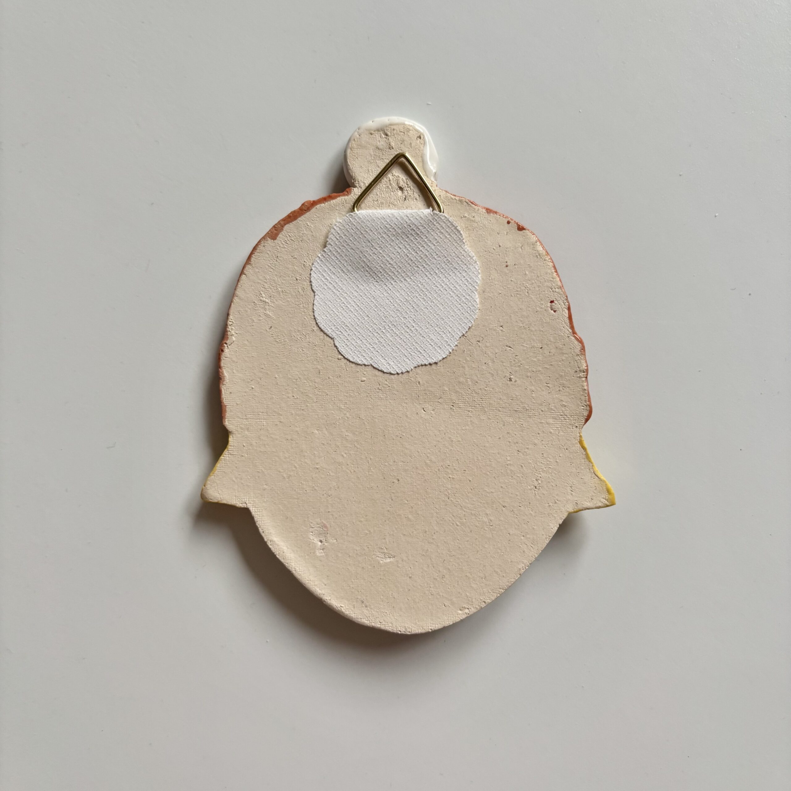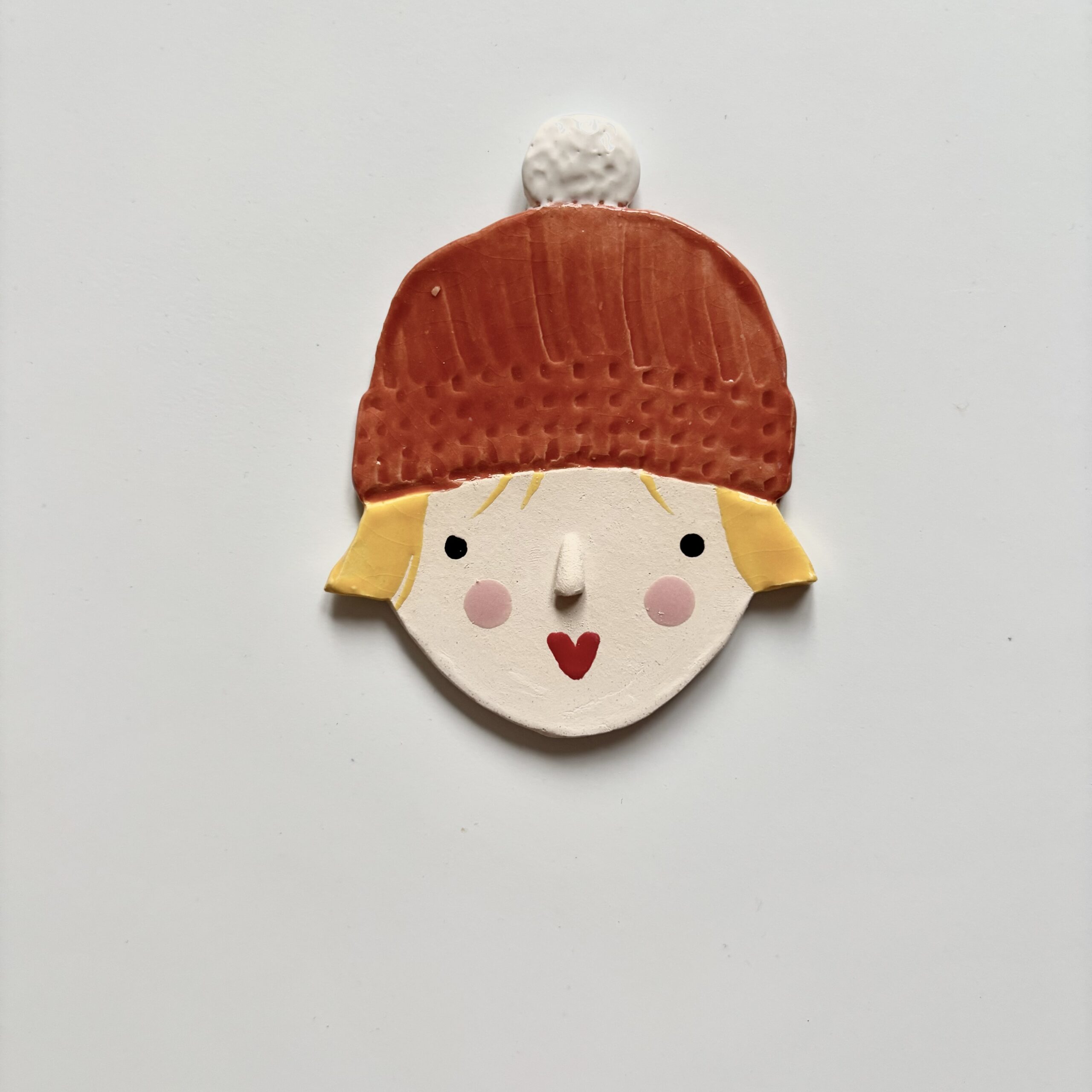 Dit Portretje met bruine muts heb ik gemaakt van een restje klei en is gewoon fun aan de muur, op je bureau of als lief cadeautje. Elke Portretje is uniek. Dit grote portretje is 9 cm hoog en 7 cm breed.