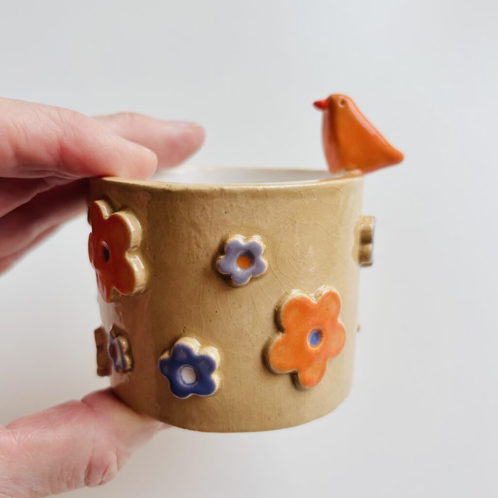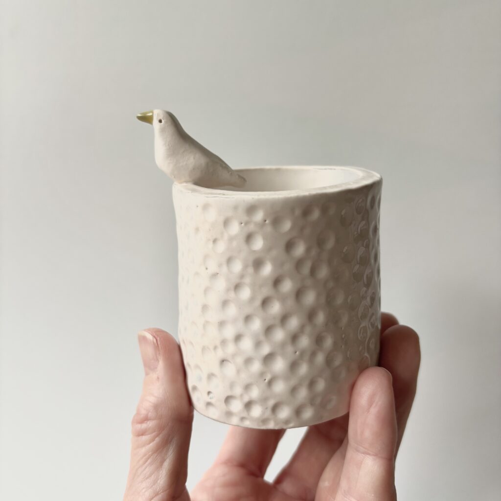 Vaasje/ potje met vogeltje beige