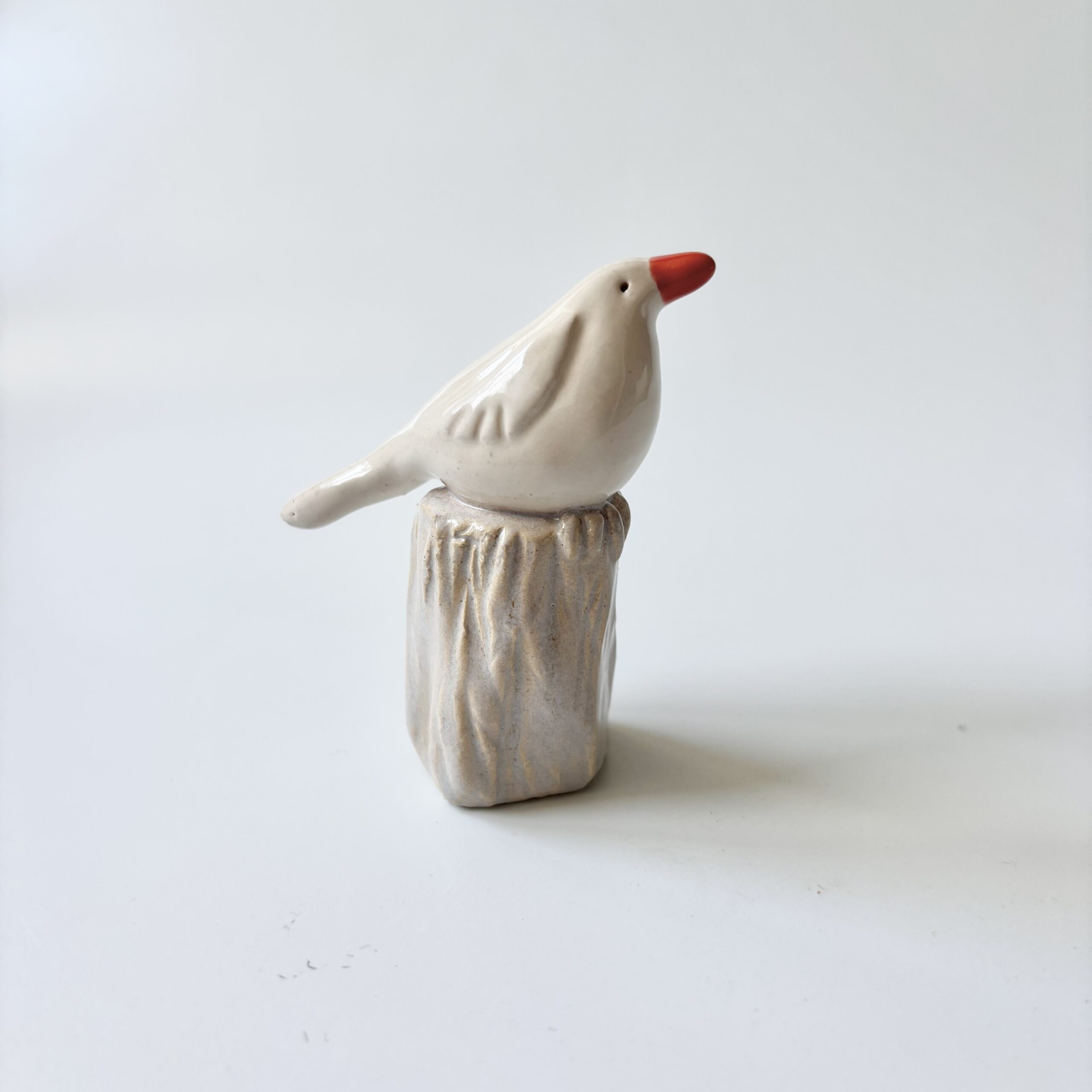 Vogel wit op stammetje van keramiek. Ik heb deze vogel met de hand gevormd en ook het stammetje heb ik handgevormd. Daarna heb ik hem geglazuurd met een witte glazuur en het stammetje heb ik een zacht grijze kleur gegeven. Een uniek cadeau voor jezelf of iemand anders, die lieverd die wat extra aandacht verdient of die vogelverzamelaar. Er is maar één uniek exemplaar.
