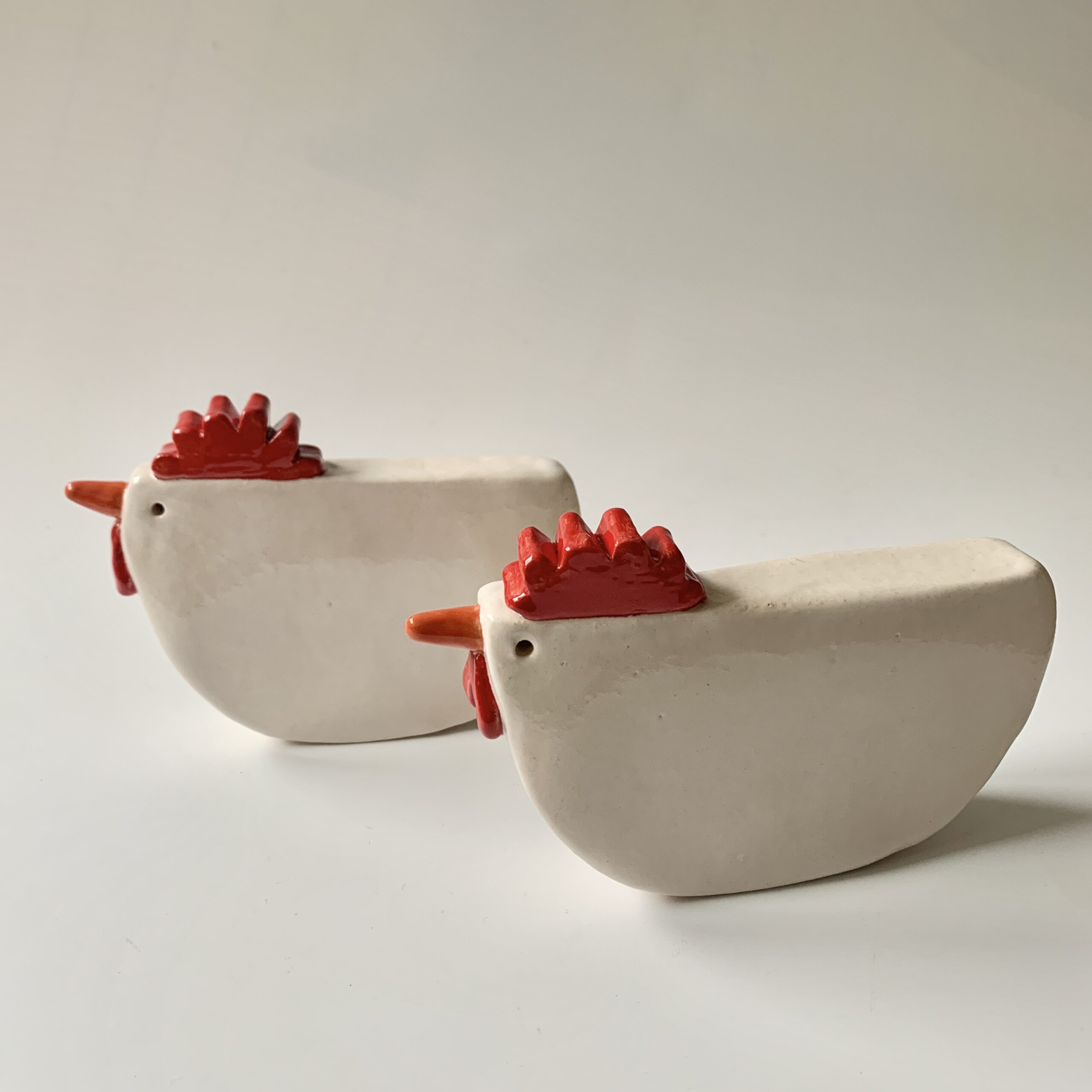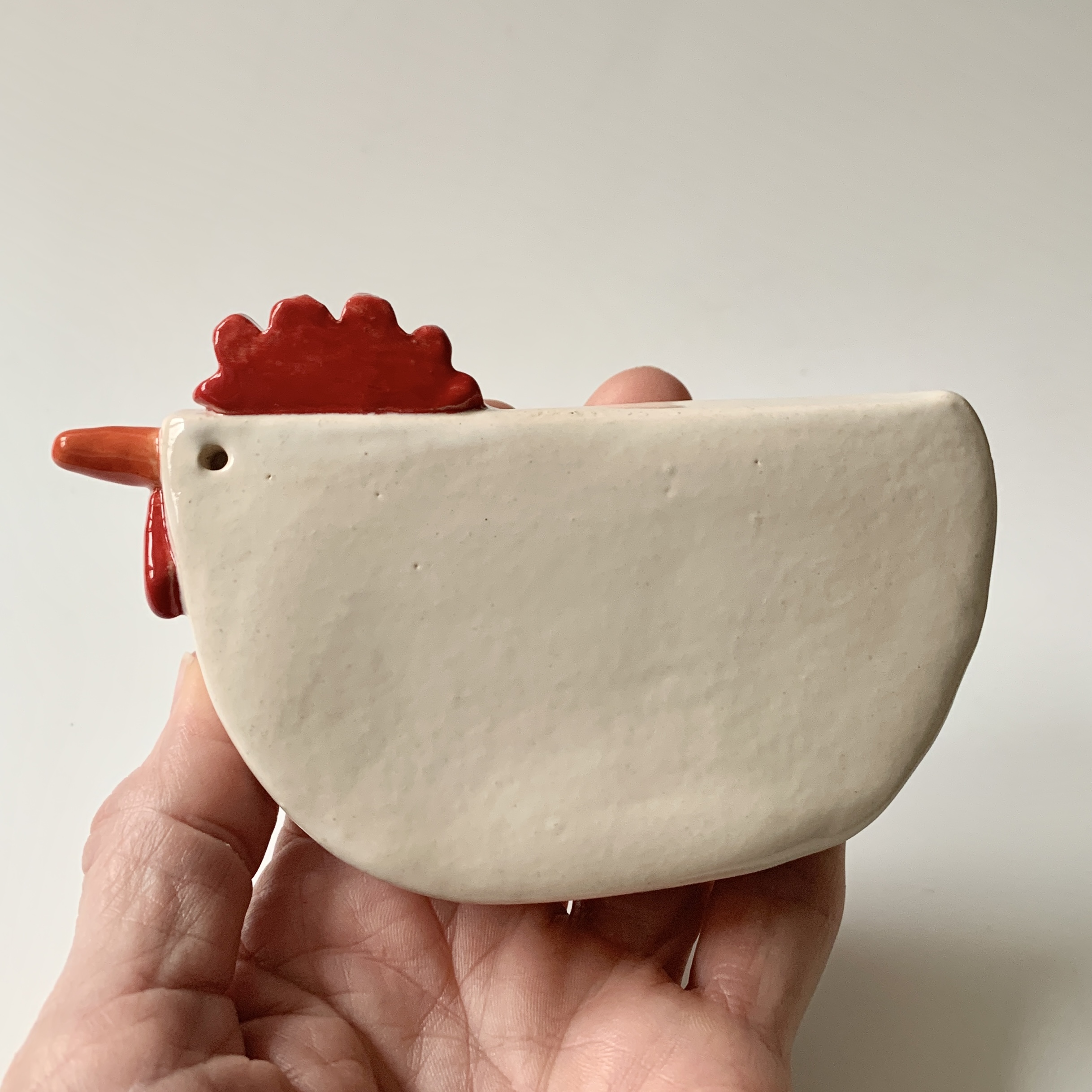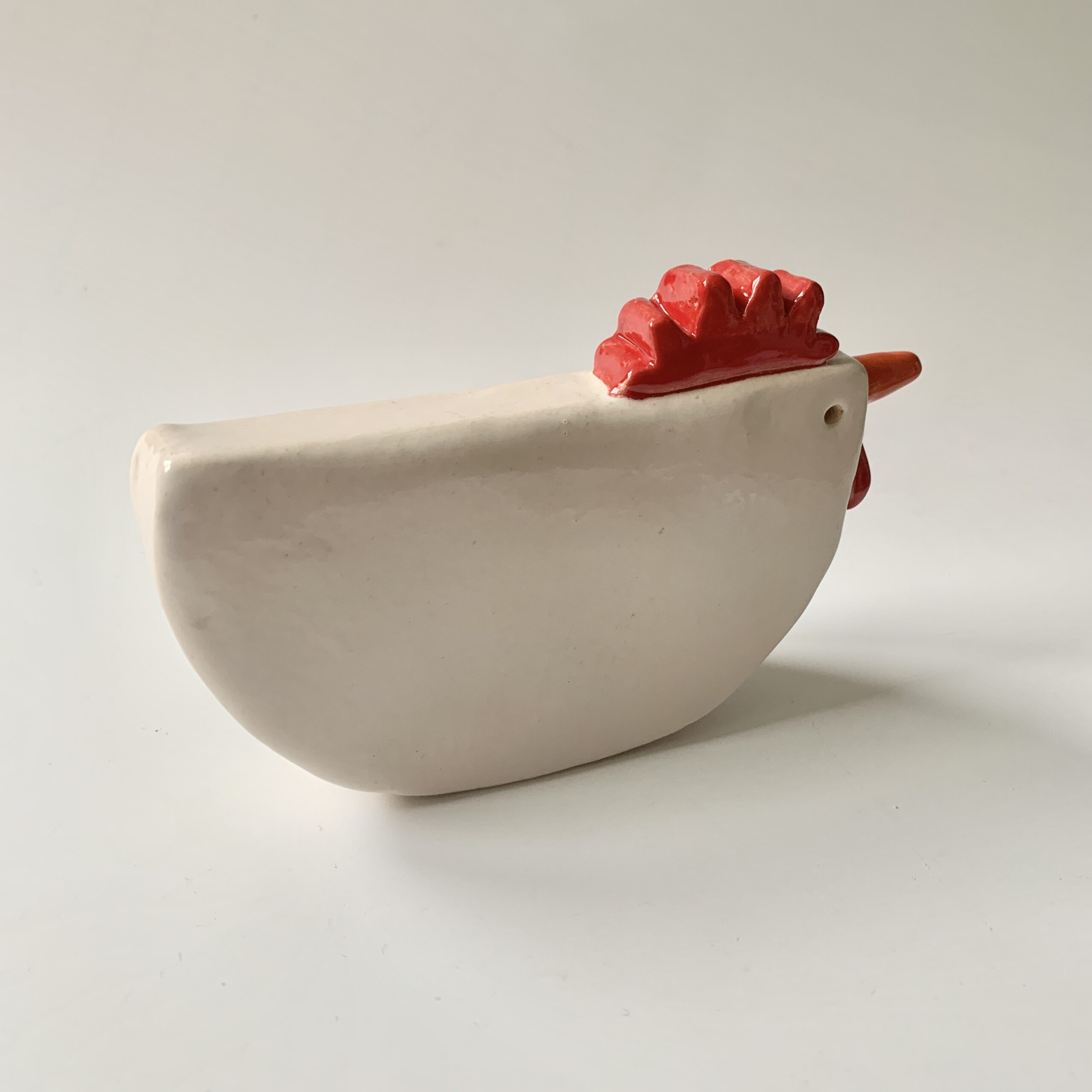 Witte kip van keramiek. Ik heb deze kip met de hand gevormd en daarna heb ik ze wit geglazuurd. Een echte voorjaarsbrenger en een uniek cadeau voor jezelf of iemand anders. Er zijn twee unieke exemplaren want ik kan nooit twee keer precies dezelfde kip maken.